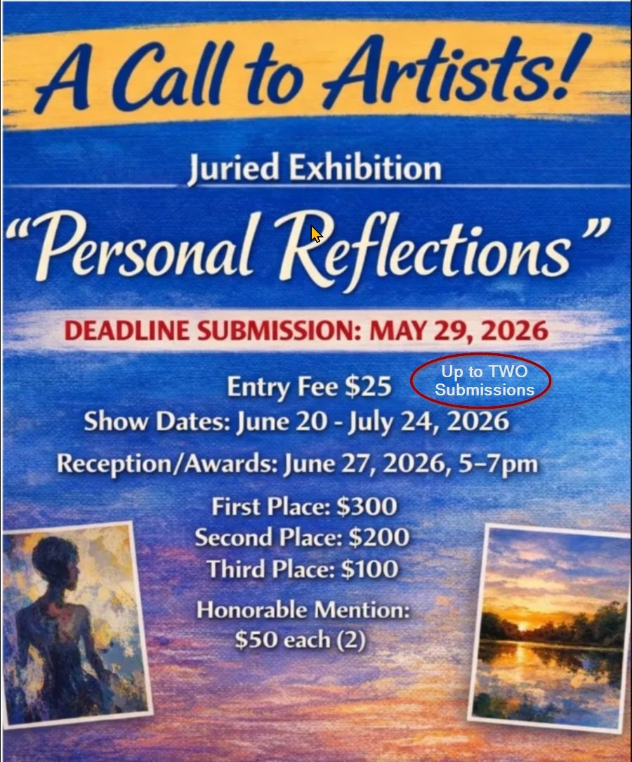 Your payment allows you to submit 1–2 pieces of artwork for consideration in the juried show.